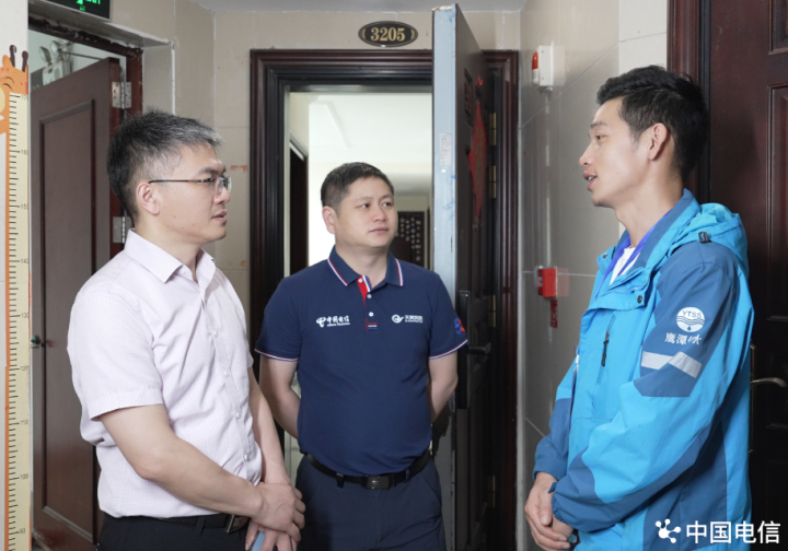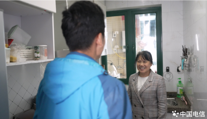 ▲天翼物联技术专家与鹰潭供水运维人员到居民家中检查水表情况
